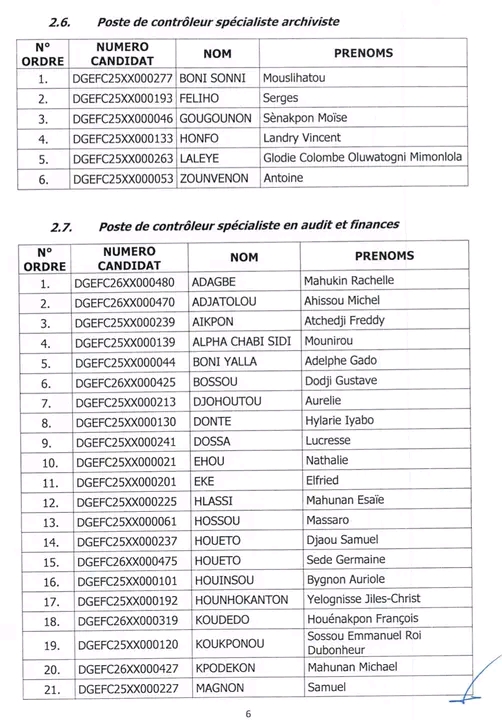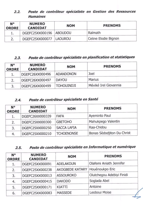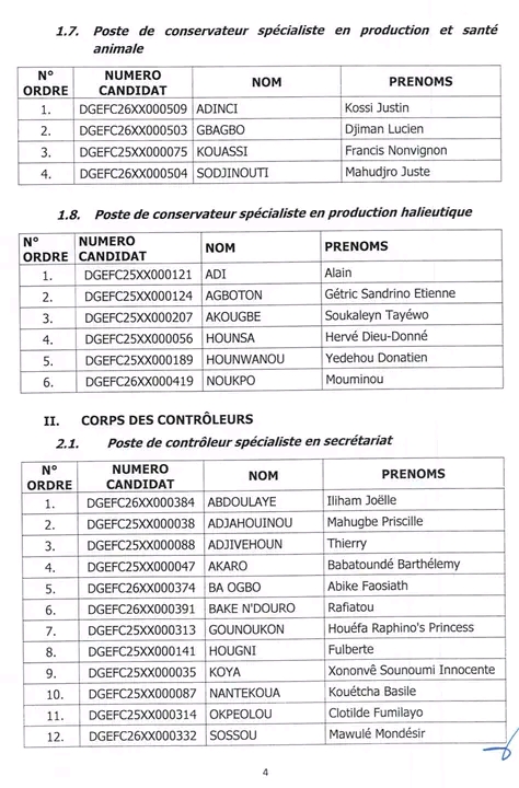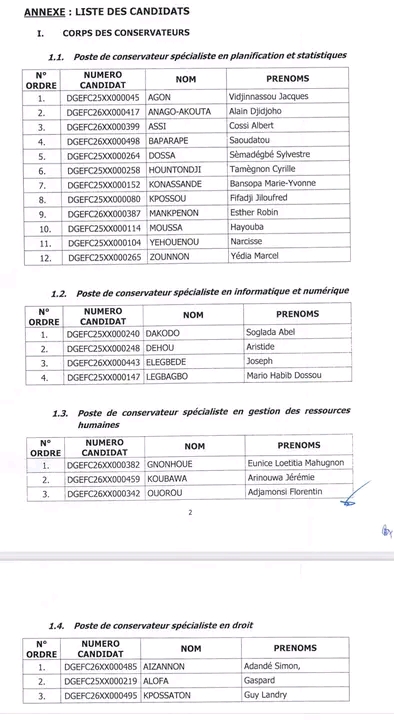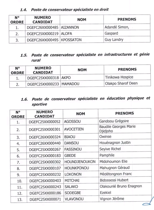 La Direction générale des Eaux, Forêts et Chasse a publié la liste des candidats retenus pour la phase sportive du concours visant à recruter 221 fonctionnaires spécialistes pour l’année 2025. Les épreuves physiques se dérouleront le 21 février 2026 au CEG 1 de Bohicon, à partir de 7 heures.